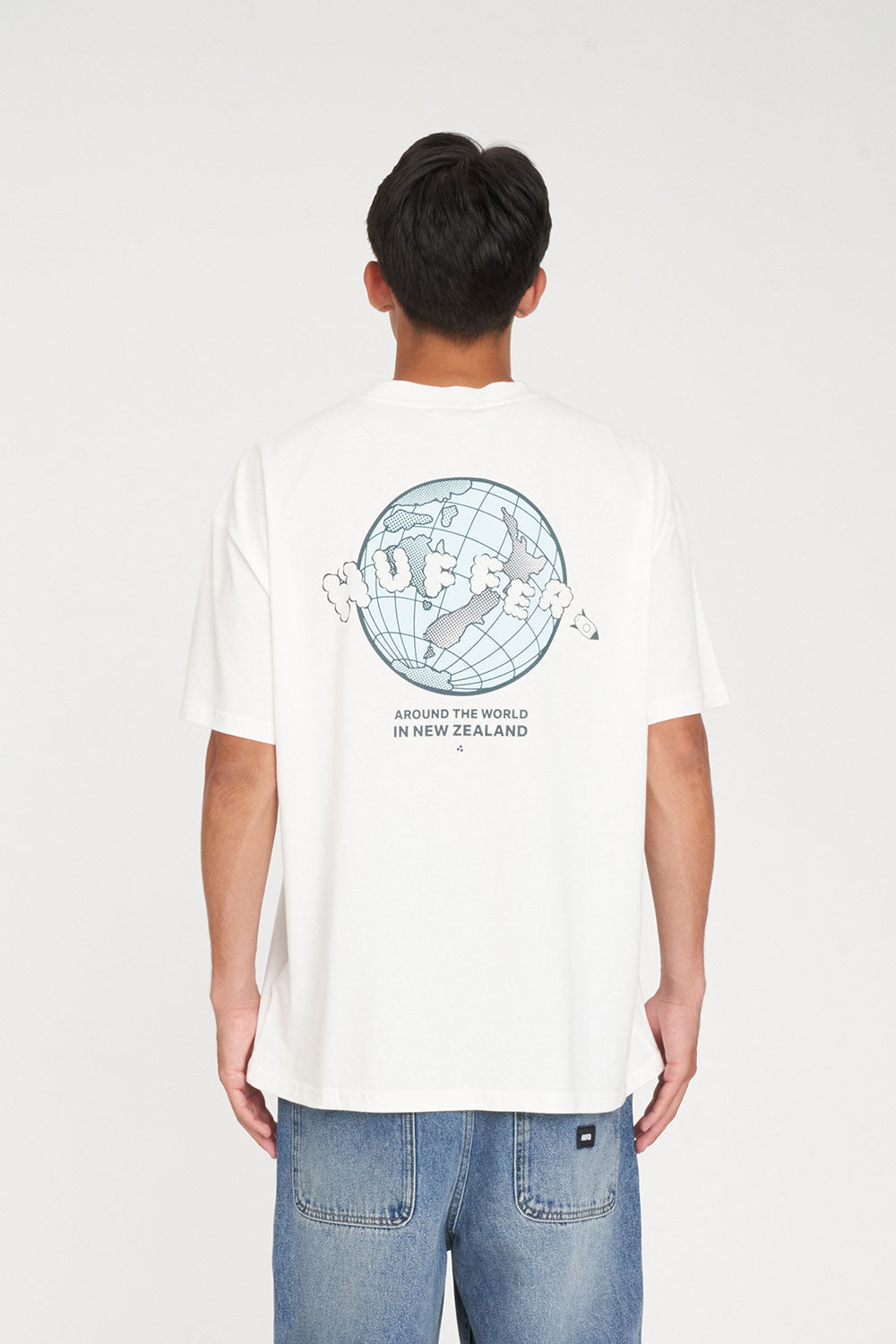 Around the world in New Zealand. • This one's for manifesting a holiday or going on one. • What you need to know: 100% Cotton, 220gsm, 25mm Neck rib, Premium weight jersey, Relaxed fit, Short sleeve, Huffer branded placement screenprint