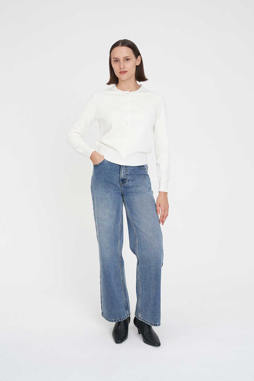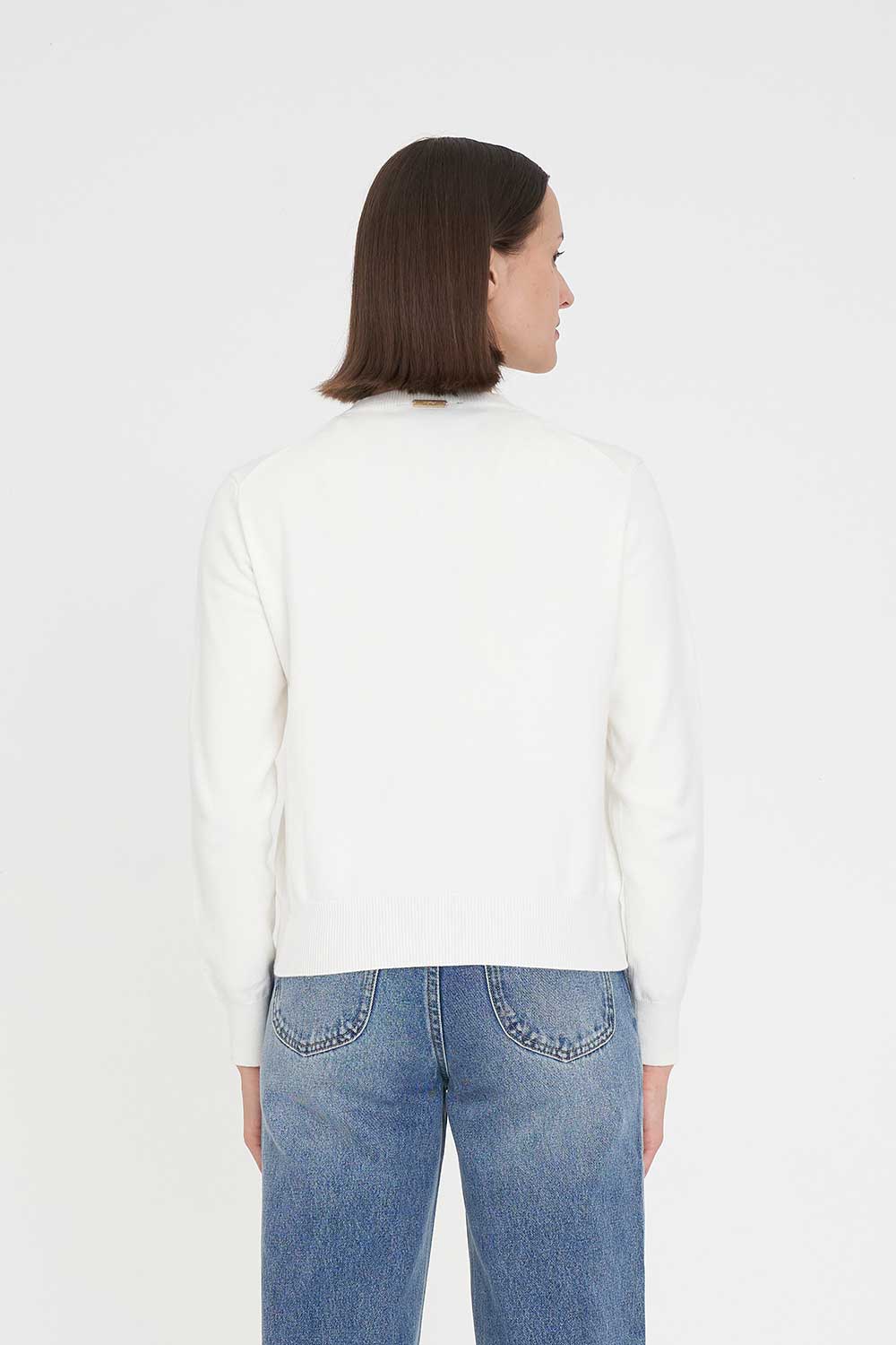 50% Viscose 28% Polyester 22% Nylon / Fully fashioned knit / jersey stitch body and sleeves, with 1x1 rib neckband, hemband, cuffs, and button tab/ Round neck / Huffer branded gold metal plate