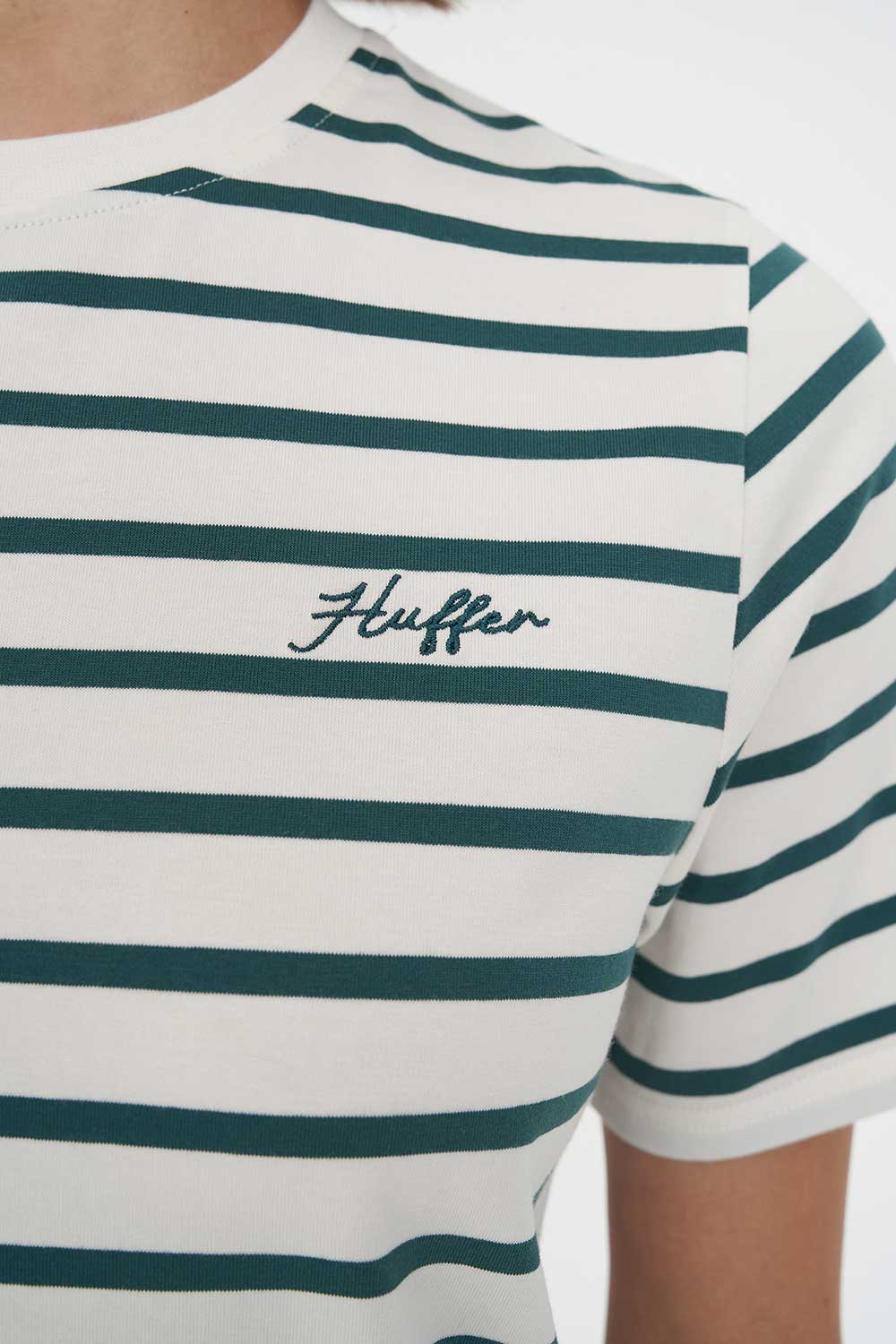 97% Cotton, 3% Elastane / 186gsm / 15mm neck rib / Short sleeve classic fit / Huffer branded placement embroidery