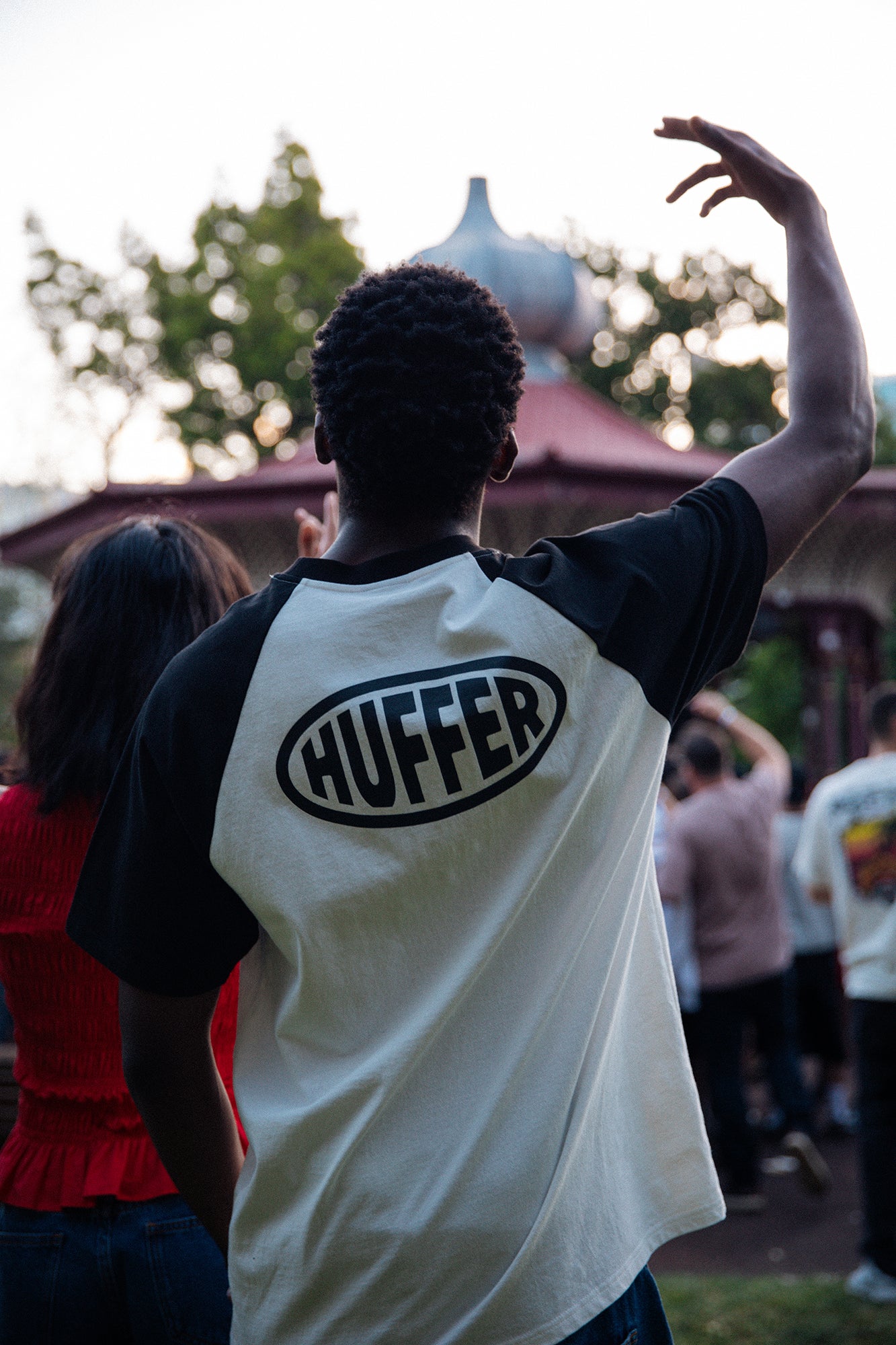 All flex, no fuss • This tee does the job without trying too hard • What you need to know: 100% Cotton, 220gsm, Raglan Sleeves, Custom Huffer colour, relaxed fit, Long sleeve, Huffer woven label branding