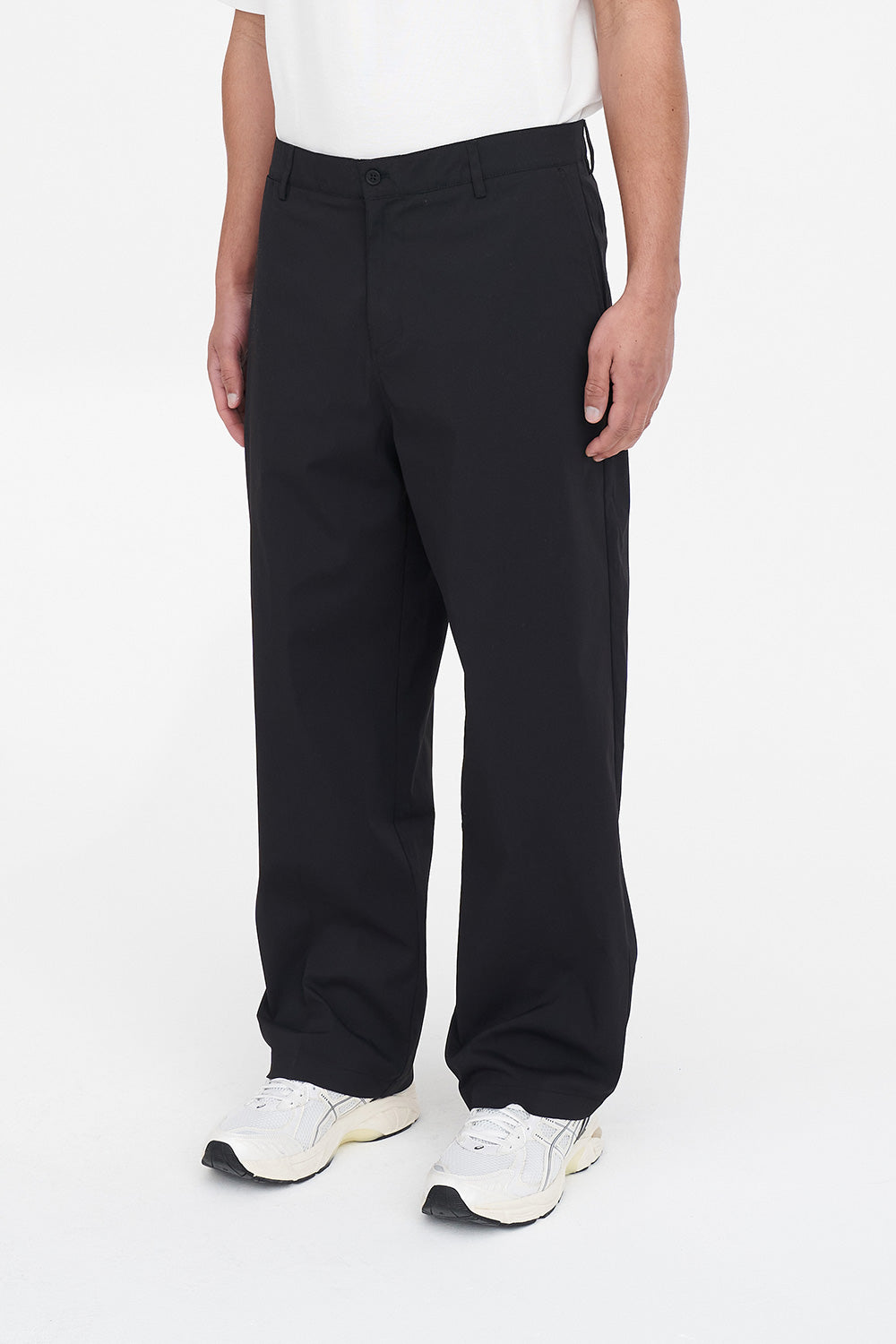 95% Nylon 5% Spandex / 146gsm / Tailored waistband and fly front fastening / Wide leg / Belt loops / Front quarter pockets/ Back welt pocket with button opening / Branded internal elastic waistband / Huffer branded embroidered logo