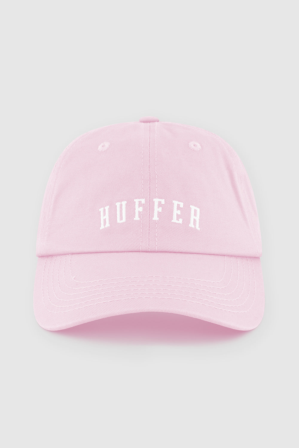 Huffer Golf • Whether you're chasing birdies, bogeys, or simply the vibes, we've dialled in fabrics that breathe, stretch, and stay fresh from tee off to the 19th hole. • Here's what you should know: 100% Cotton drill, 6 panel cap, Unstructured crown, Strap adjustable closure, Curved peak, Embroidered eyelets, Custom Huffer embroidery