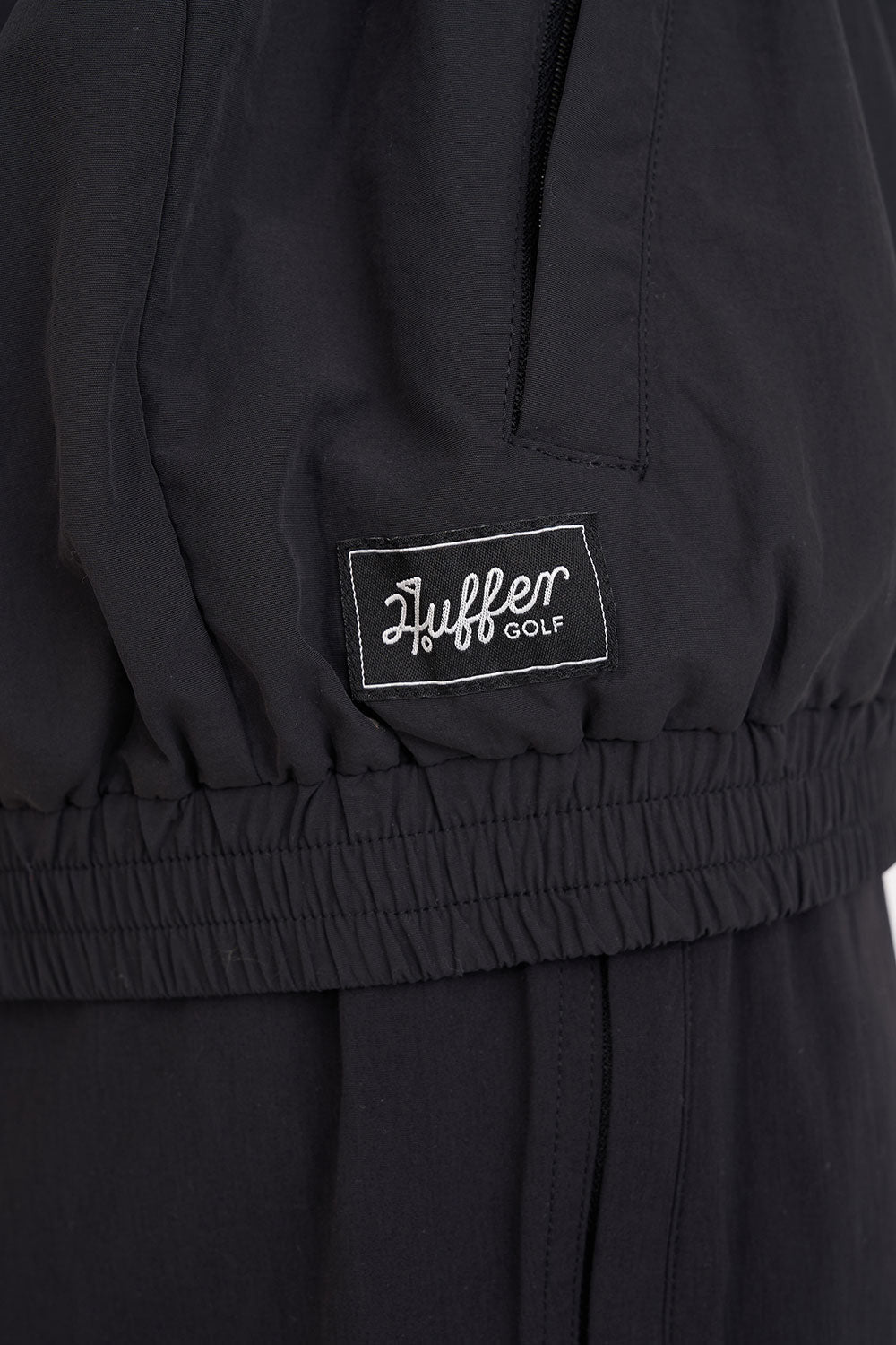Huffer Golf • We know it takes a lot of balls so we’ve created a fit that keeps you fresh • Here’s what you should know: Performane Jacket with 100% Nylon wind resistant outer, boxy streetwear fit – bringing the Huffer edge to your game, mesh lining for breathability, and elasticated sleeve cuffs to lock in heat. Engineered for those that tee off in all temps.