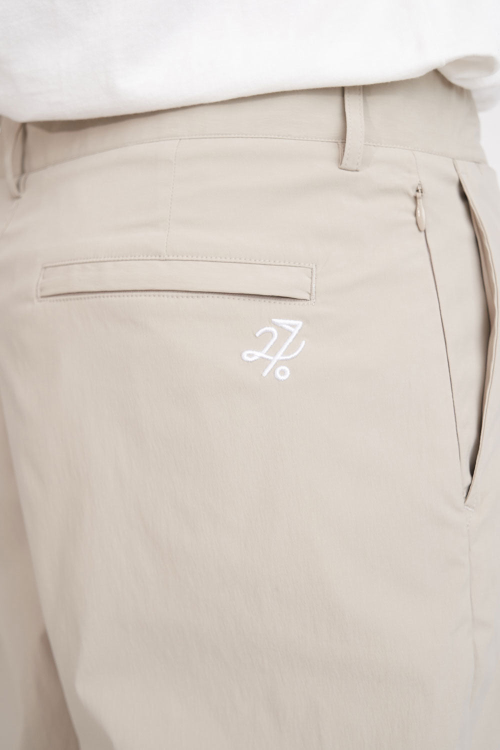 95% Nylon 5% Spandex / 146gsm / Tailored waistband and fly front fastening / Wide leg / Belt loops / Front quarter pockets/ Back welt pocket with button opening / Branded internal elastic waistband / Huffer branded embroidered logo