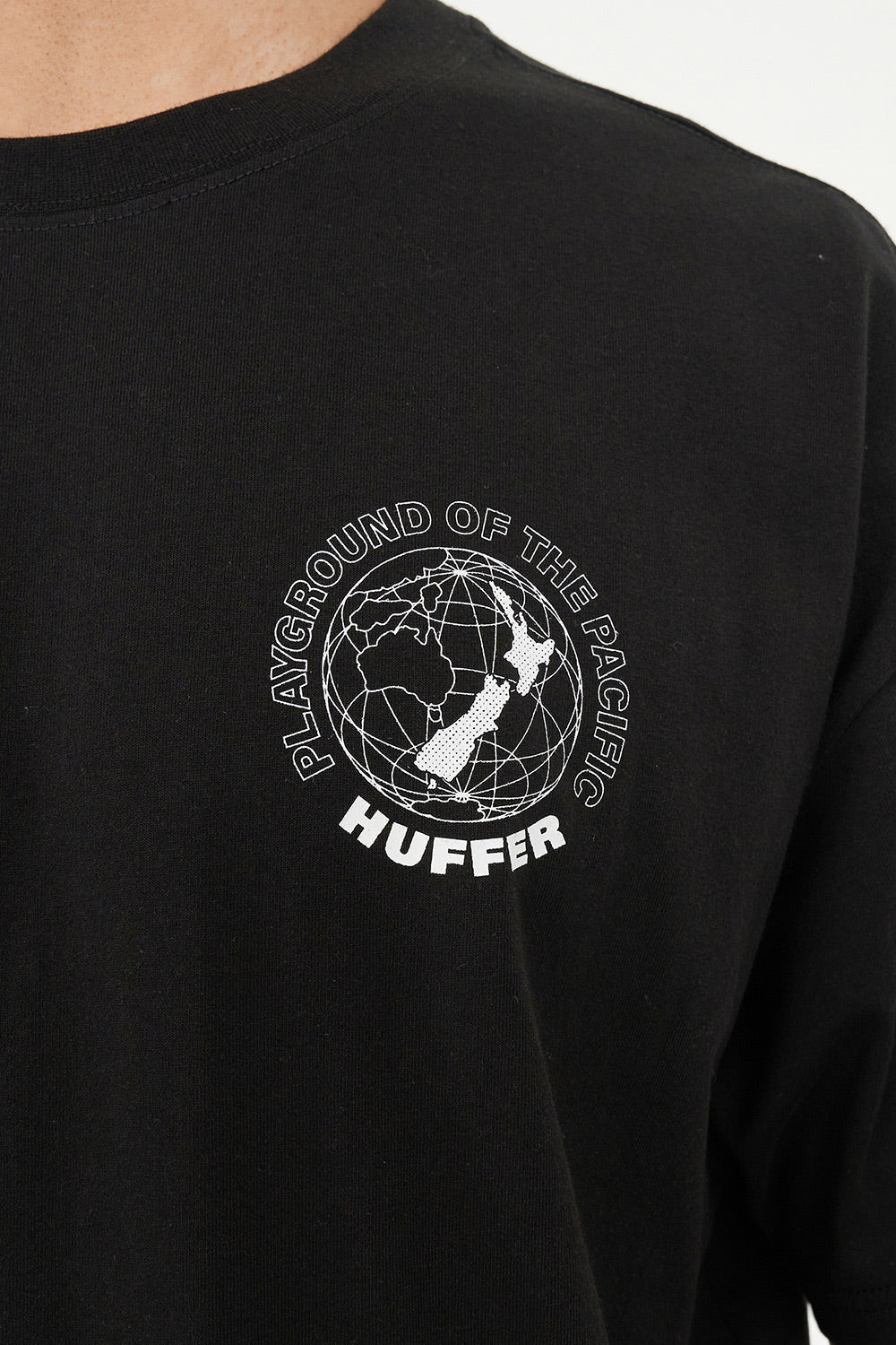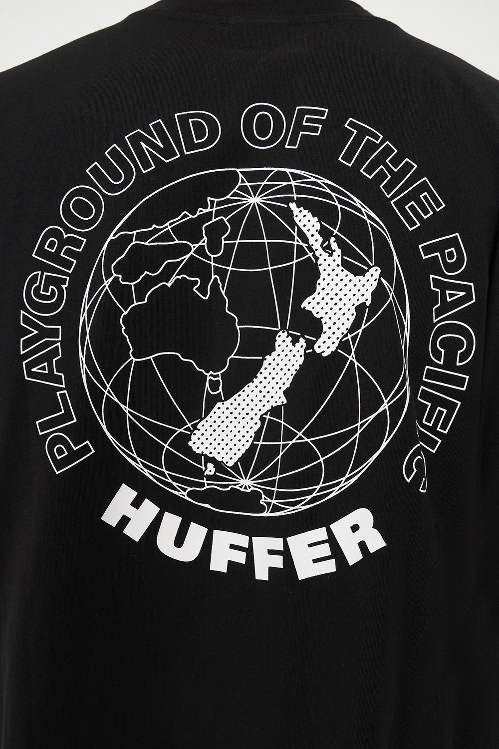 Aotearoa on the map, literally • Keep your coordinates locked in • What you need to know: 100% Cotton, 190gsm, 20mm Neck rib, Classic streetwear fit, Short sleeve, Huffer branded placement screenprint