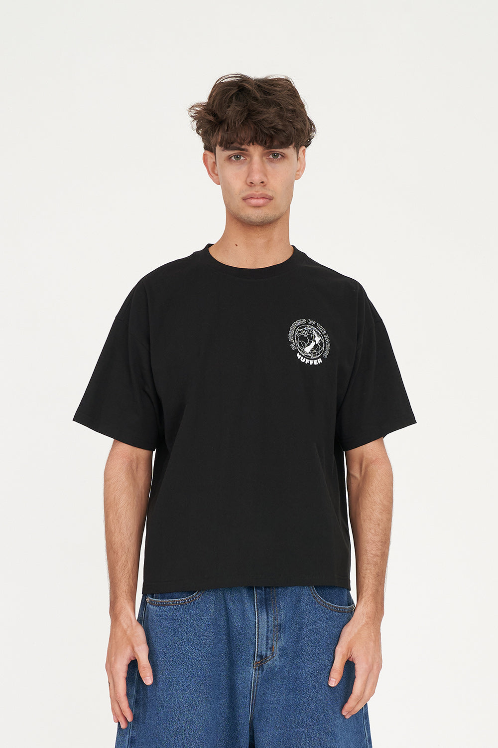 100% Cotton / 190gsm / 20mm Neck rib / Classic streetwear fit / Short sleeve / Huffer branded placement screenprint