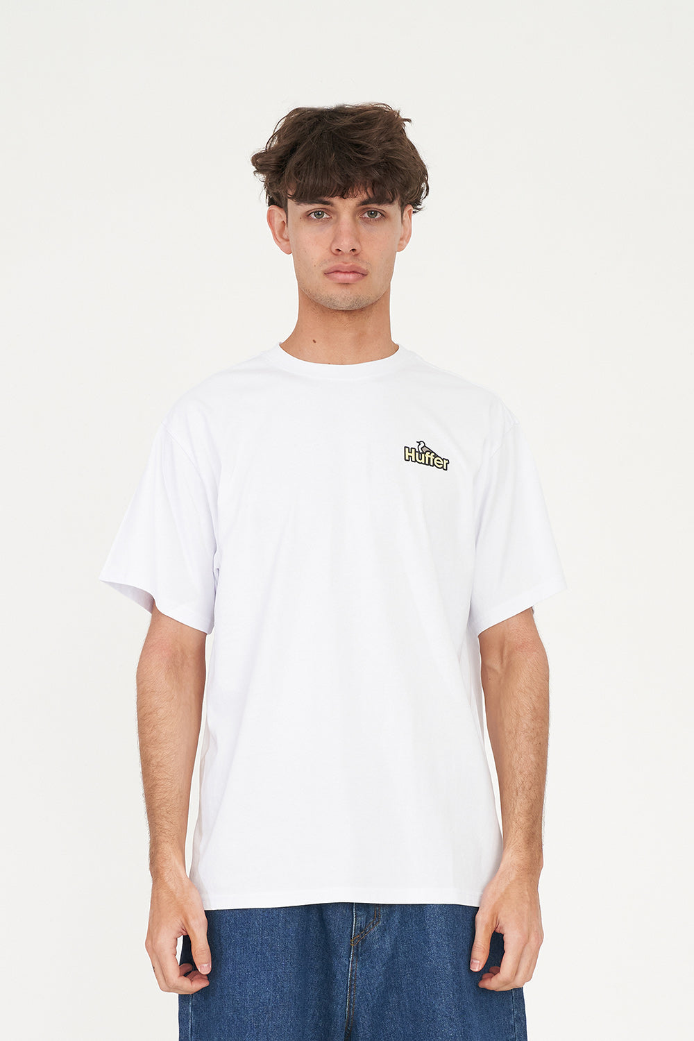 100% Cotton / 190gsm / 20mm Neck rib / Classic streetwear fit / Short sleeve / Huffer branded placement screenprint
