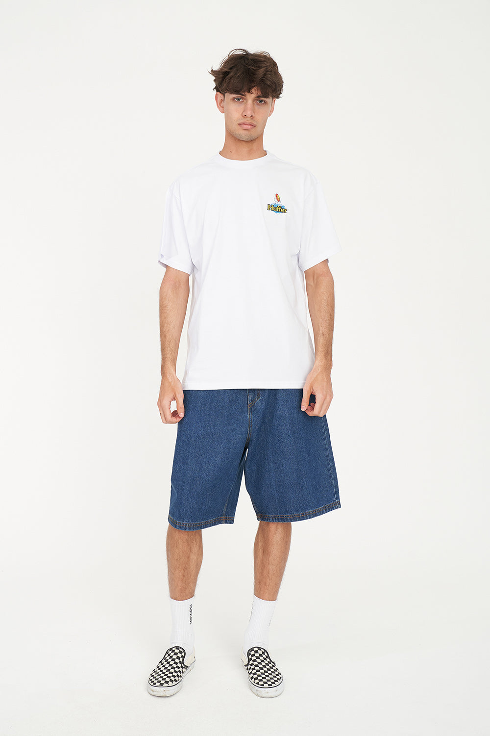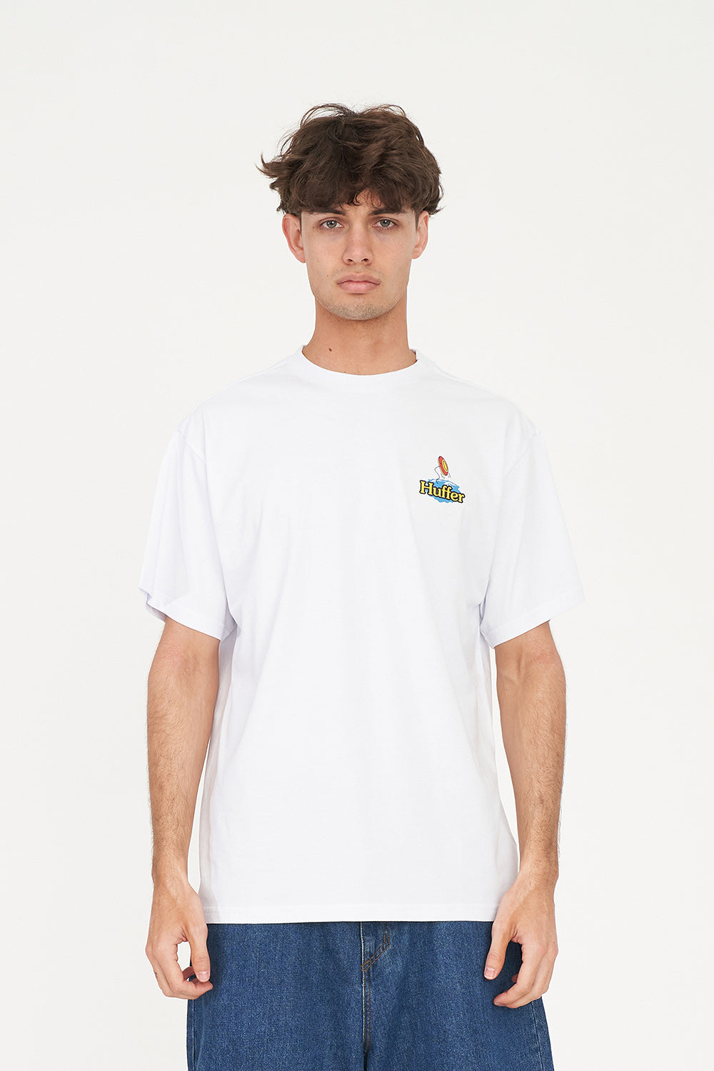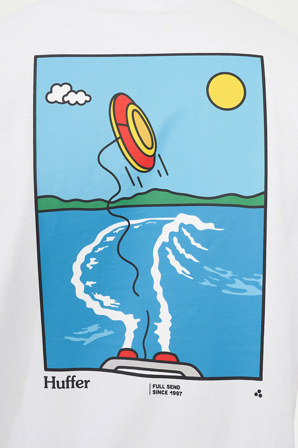 Speed, splash and a bit of chaos • Made to say "I came for the vibes and stayed for the wipeouts" • What you need to know: 100% Cotton, 190gsm, 20mm Neck rib, Classic streetwear fit, Short sleeve, Huffer branded placement screenprint