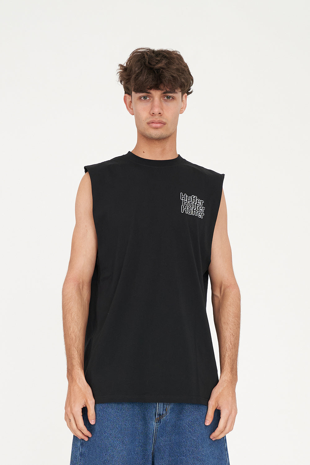 100% Cotton / 190 gsm / 20mm Neck rib / Standard weight jersey / Classic streetwear fit / Sleeveless / Huffer branded placement screenprint