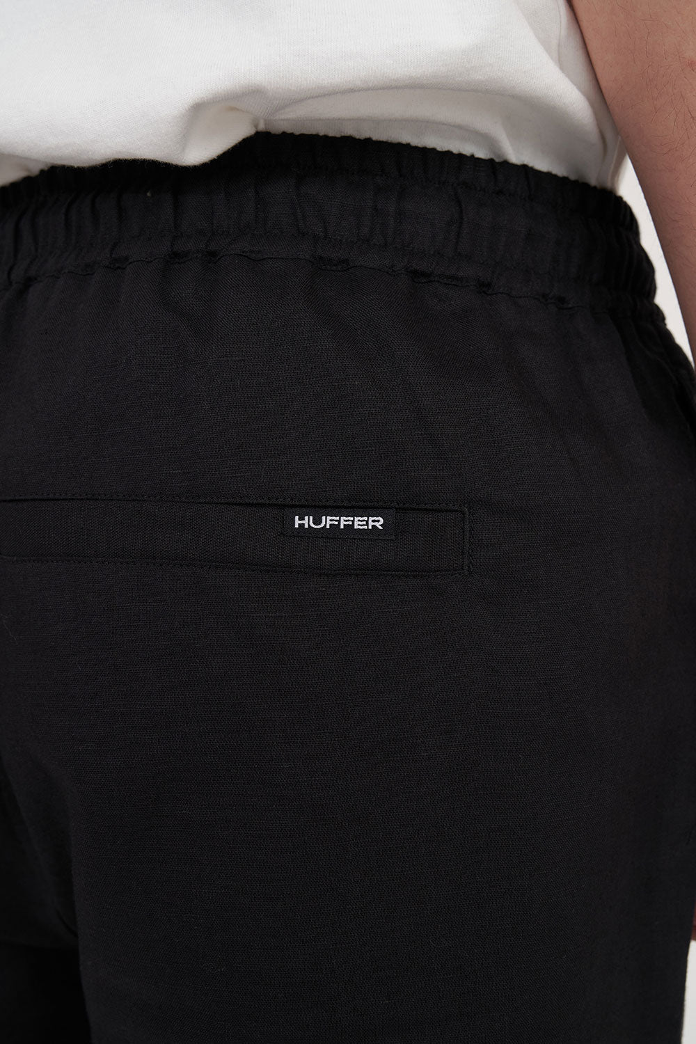 Laid-back and low-maintenance • These shorts do chill better than most • What you need to know: 150gsm 55% Cotton 45% linen, custom Huffer colour, relaxed fit, 4 pocket detail, elasticated waistband with drawcord and Huffer branded woven label