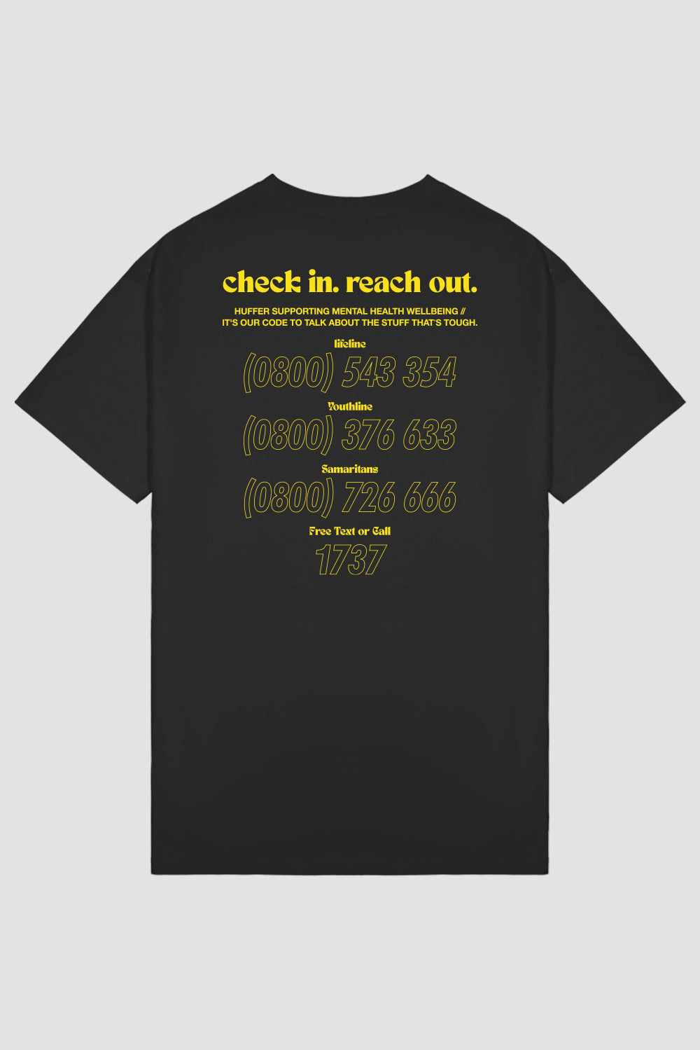 • PEOPLE PRESENCE: IT'S OUR CODE TO TALK ABOUT THE STUFF THAT'S TOUGH! • Check in, reach out • What you need to know: 100% Cotton, 190gsm, 20mm Neck rib, Standard weight jersey, Classic streetwear fit, Short sleeve, Huffer branded placement print